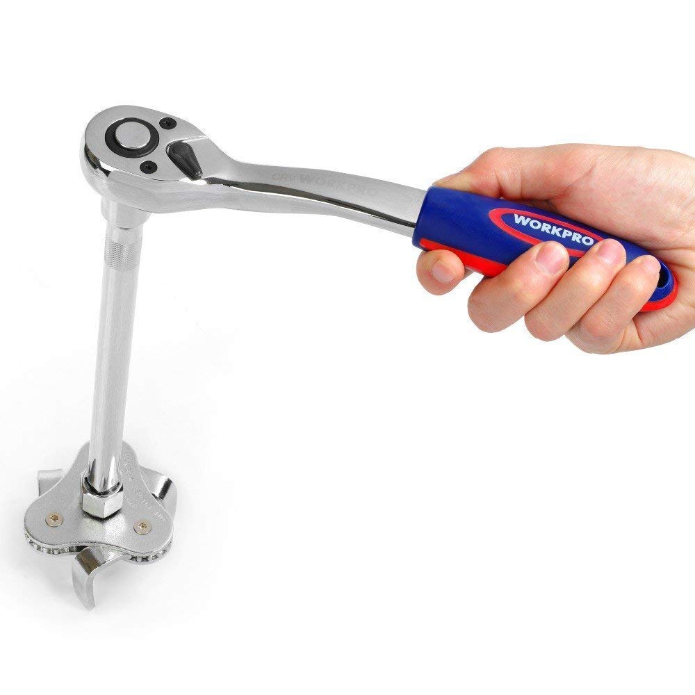 WORKPRO 123PC Mechanic Tool Set including 1/4″ 1/2″ 3/8″ Drive Socket Set, Quick Release Ratchet Wrench, Combination Spanners, Ratchet Screwdriver Bit Set, Hex Key in Storage Box